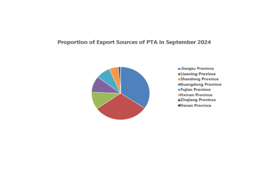 In September, Jiangsu Province exported 131,400 tonnes of PTA, making it the top export origin in China. Liaoning Province dropped to second place, while Shandong Province rose to third. Liaoning and Shandong exported 116,400(30.58%)and 40,600 tonnes(10.71%).Guangdong and Fujian followed, with 37,200(9.78%) and 30,600 tonnes(8.03%).
